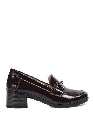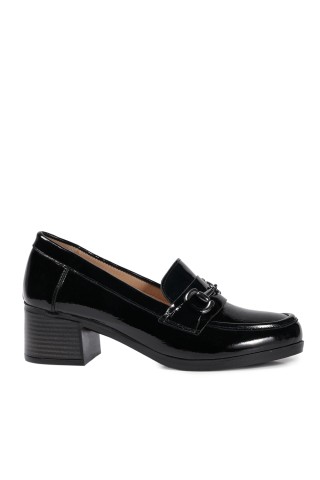 Zeytuk Siyah Kalın Topuklu Rugan Deri Kadın Ayakkabı