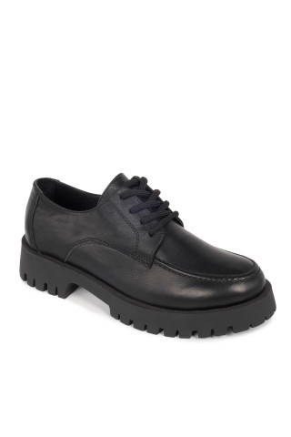 Zeytuk Siyah Hakiki Deri Loafer Kadın Ayakkabı