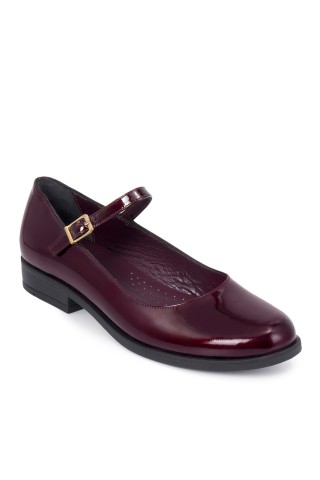 Zeytuk Bordo Hakiki Deri Mary Jane Kadın Ayakkabı