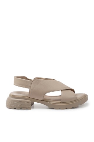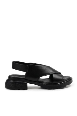 Zeytuk Siyah Hakiki Deri Kadın Sandalet
