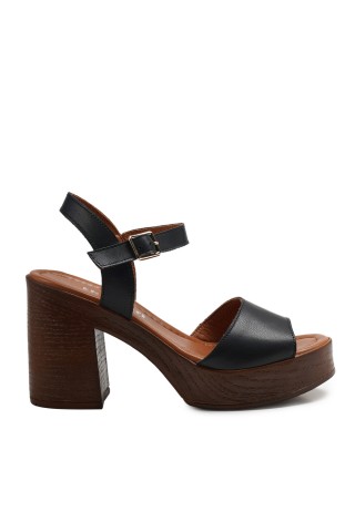 Zeytuk Siyah Hakiki Deri Kadın Sandalet