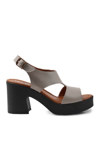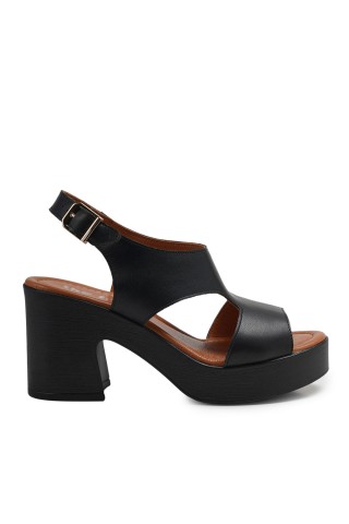 Zeytuk Siyah Hakiki Deri Kadın Sandalet