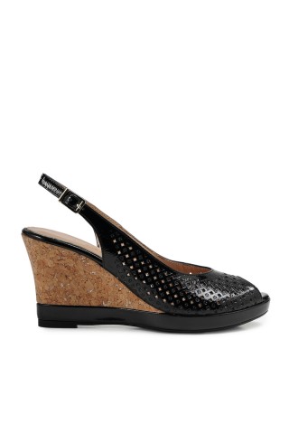 Zeytuk Siyah Sandalet Deri Kadın Ayakkabı