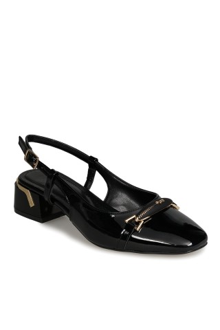 Zeytuk Siyah Slingback Rugan Deri Kadın Ayakkabı