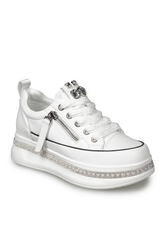 Zeytuk Beyaz Sneakers Deri Kadın Ayakkabı