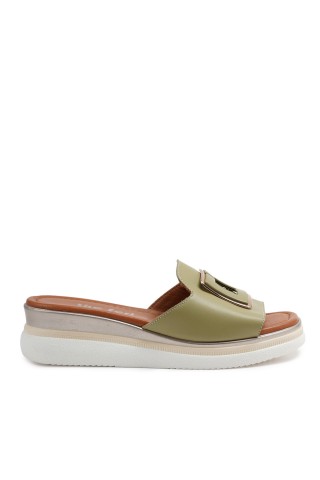 Zeytuk Yeşil Terlik Deri Kadın Terlik