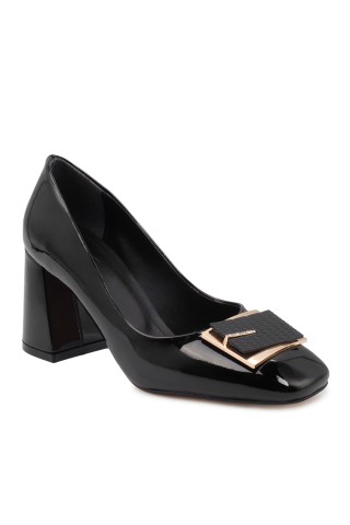Zeytuk Siyah Rugan Kadın Topuklu Ayakkabı