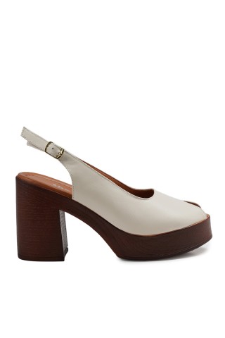 Zeytuk Krem Hakiki Deri Kadın Sandalet