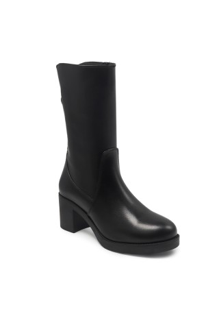 Zeytuk Siyah Klasik Deri Kadın Çizme
