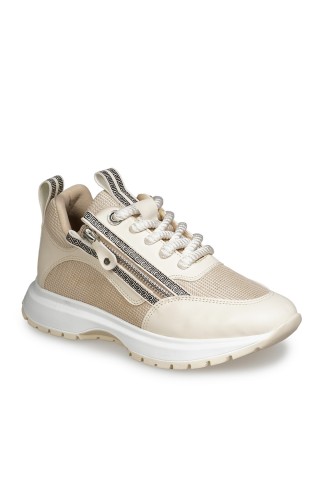 Zeytuk Bej Sneakers Deri-Tekstil Kadın Ayakkabı