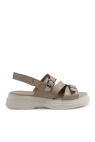 Zeytuk Beyaz Hakiki Deri Kadın Sandalet