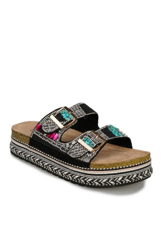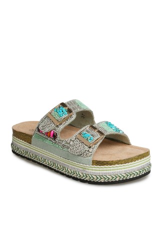 Zeytuk Beyaz Taşlı Tekstil Kadın Terlik