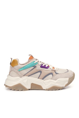 Zeytuk Krem Sneakers Hakiki Deri Kadın Ayakkabı