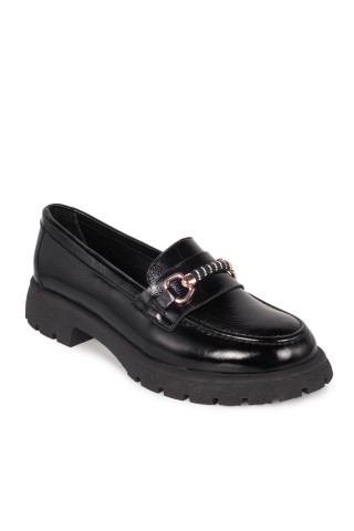 Zeytuk Siyah Rugan Loafer Kadın Ayakkabı