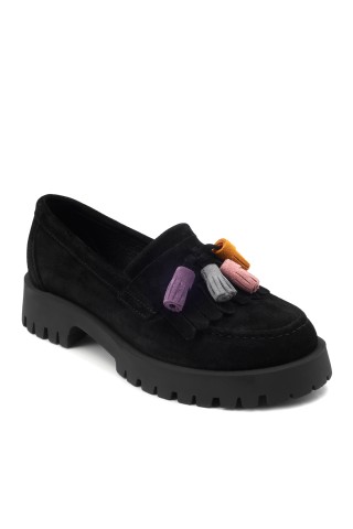 Zeytuk Siyah Süet Loafer Kadın Ayakkabı